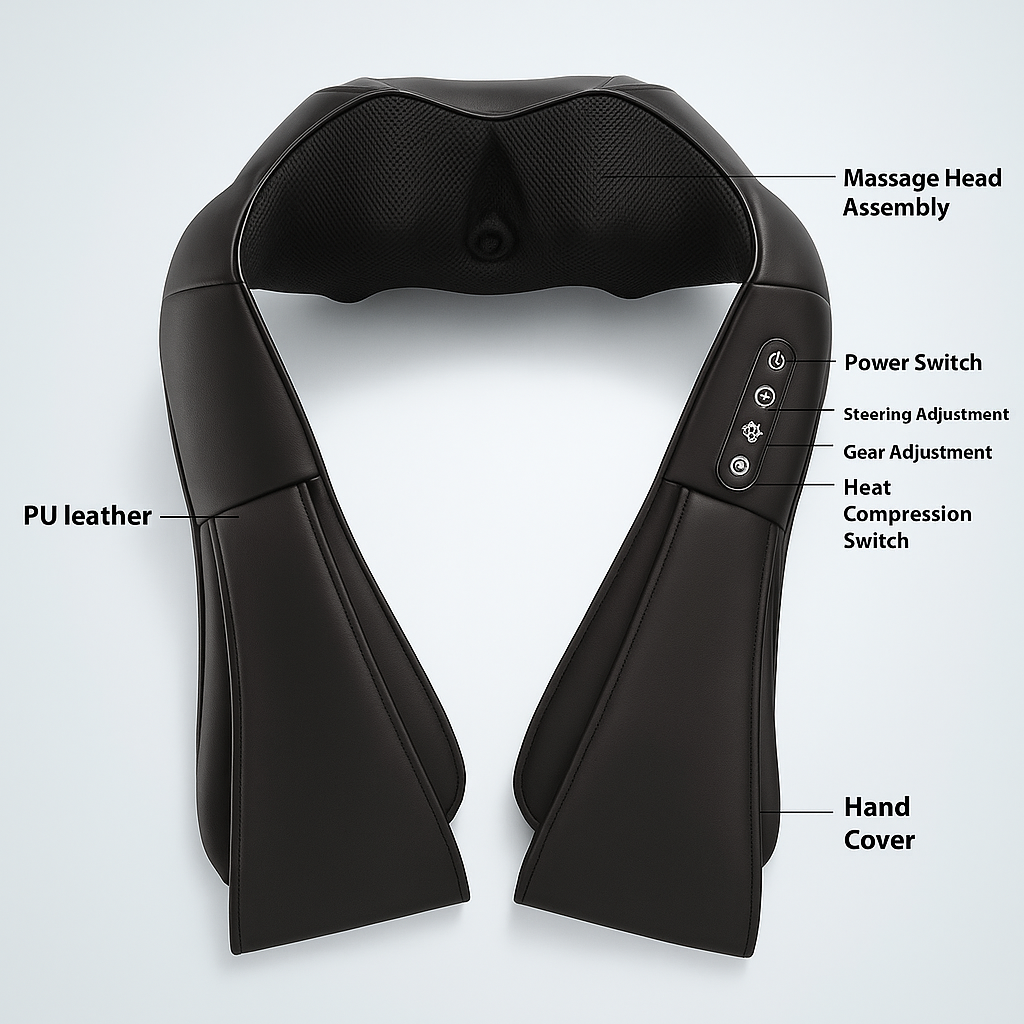 Crafted with premium PU leather and an ergonomic design, this massager offers deep-kneading relief, adjustable heat, and easy controls for a personalized, relaxing experience anytime.